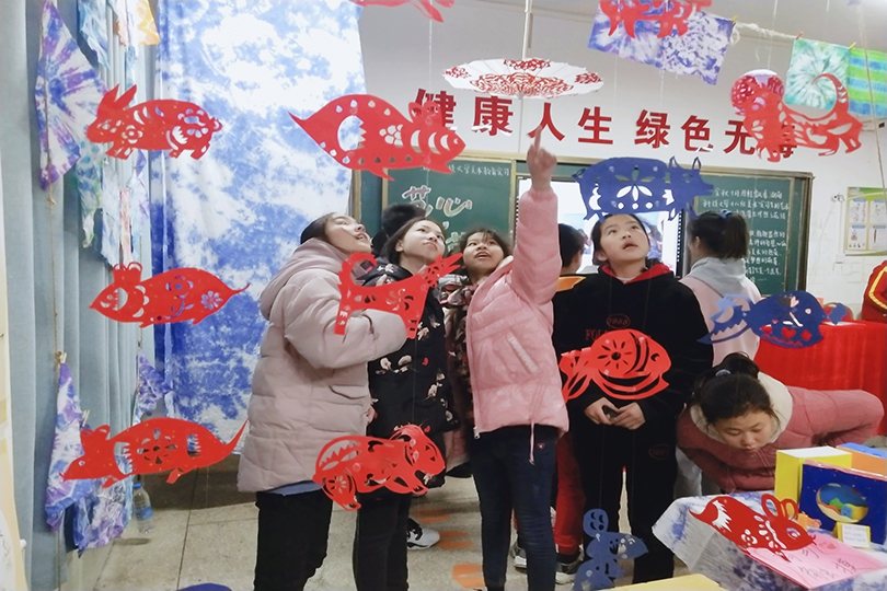 一件件色彩明快、质朴自然、稚趣盎然的学生作品,不仅凝聚着每一位美术实习老师的智慧和汗水,而且充分展现了孩子们对生活的热爱和对艺术的追求。留守儿童用不同的造型和色彩勾勒出自己心目中的完美世界,蕴含了他们内心深处纯洁而又向善的情感。这里有随心所欲的信笔涂鸦,有精心勾画的迷人线条,有绚丽多彩的景致画卷,有创意无限的手工制作……这是艺术的萌芽,也是梦想的萌芽,我们应该为他们点赞!