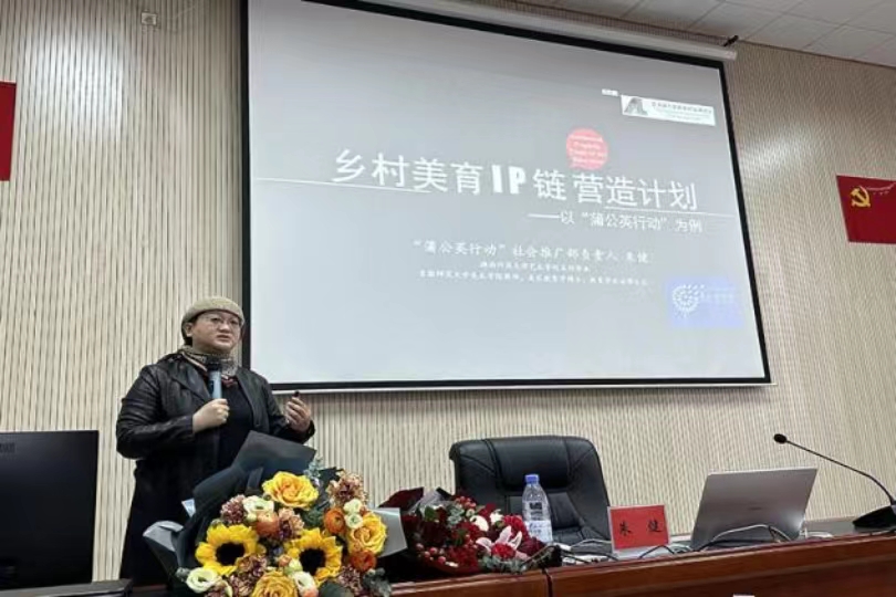 乡村美育IP链营造计划,是把乡村学校美育作为实施基础,以系统发掘传统、地方、民族特色文化资源为内容,通过开发系统课程、融入校园文化建设、扩展实施场域等教育方式,形成以乡村学校美育知识产权为核心的社会化应用型延展链条。朱健以资深的美育理论功底,丰富的实践经验,为大家分享了历年来“蒲公英行动”在乡村美育公益课程的成长和收获,通过开展特色课程、打造文化地标,助力乡村改造田园综合体应用,打造“乡村美育+”品牌,同时保护非遗文化传统,增强地方文化认同感,用美学引领乡村更高质量、更可持续发展。