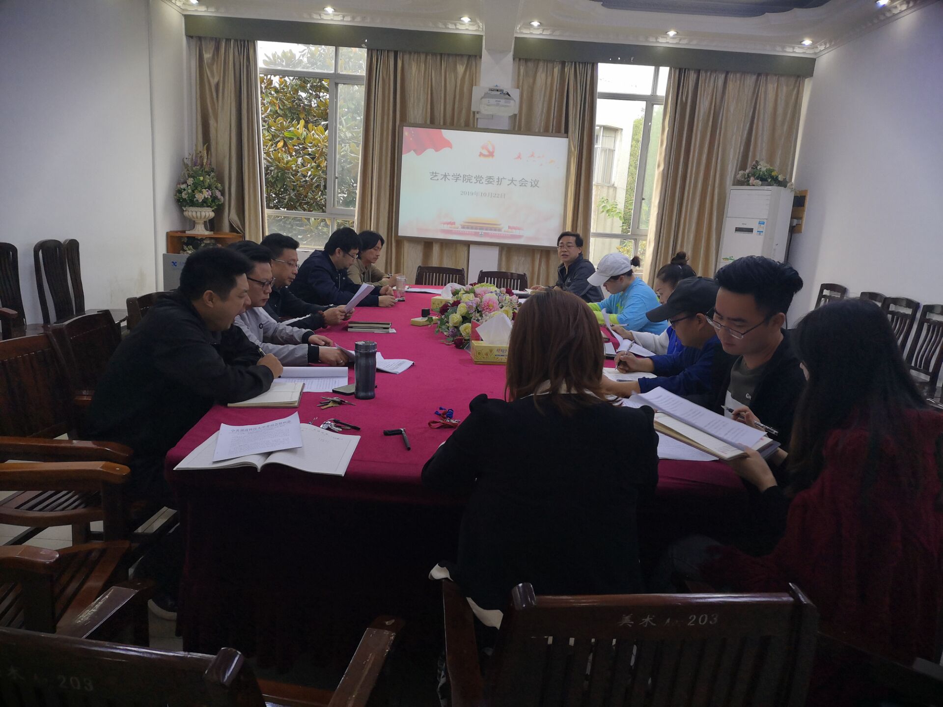 10月22日下午,艺术学院党委成员以及全体党支部书记在美术楼203召开了党委扩大会议。本次会议由党委书记曾志东主持。会上传达了学校主题教育暨加强党建工作座谈会议精神,并结合学校对主题教育工作的具体要求指出了学院目前在此项工作中存在的不足,对接下来将要完成的各项工作提出了明确的要求。会上,曾志东同志还通报了学校纪委下发的《关于在主题教育8个专项整治中整治领导干部利用名贵特产特殊资源谋取私利问题的通知》文件的主要精神,并对本次自查工作提出了要求。