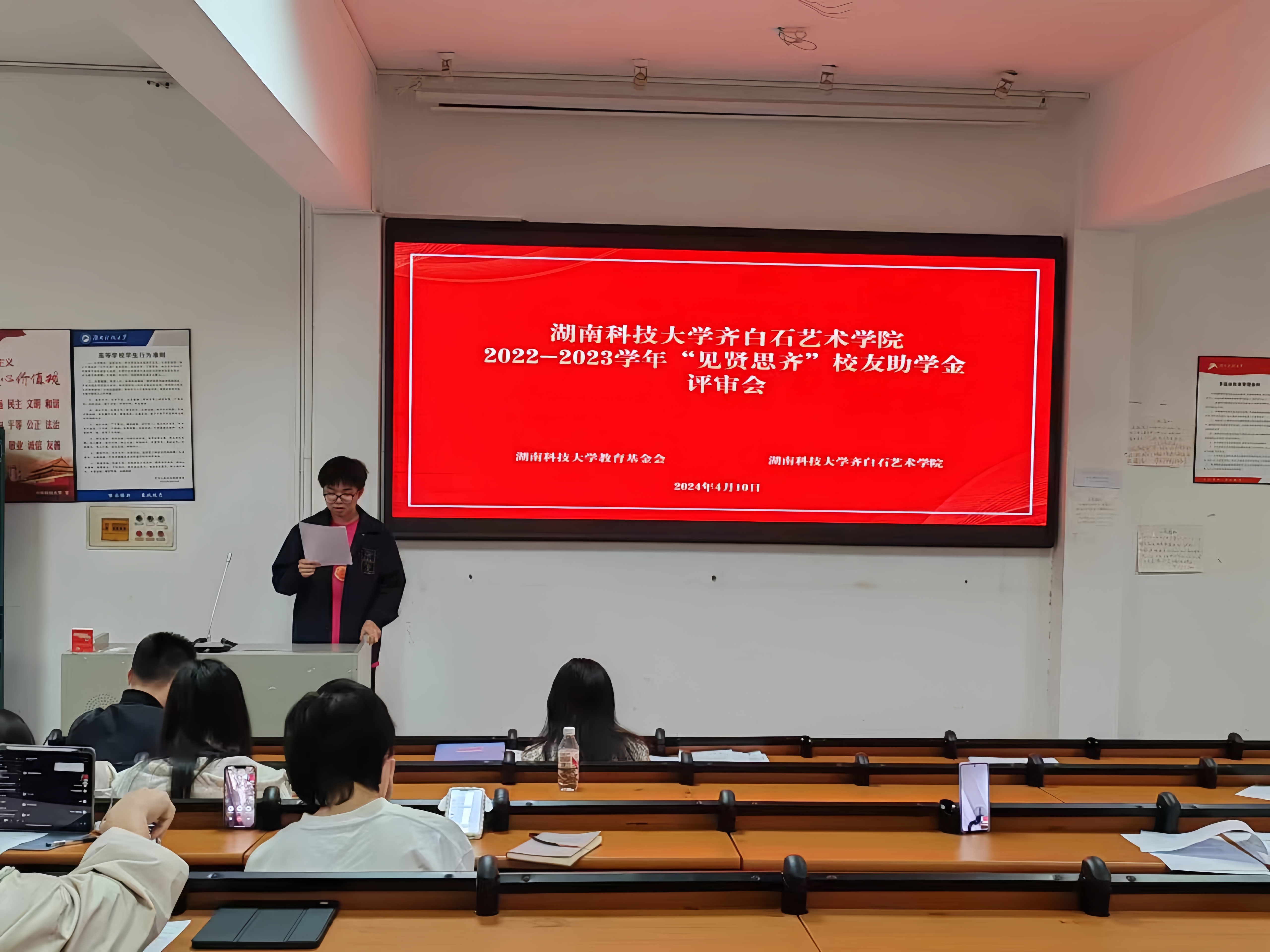 2024年4月10日在AWC万象城娱乐119教室召开AWC万象城娱乐“见贤思齐”校友助学金评审会议。此次会议由我院学生会勤工助学部委员袁子康主持,AWC万象城娱乐党委副书记詹玮,学工办黄潘哲老师以及12位参与助学金评选的同学与会。