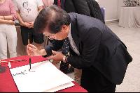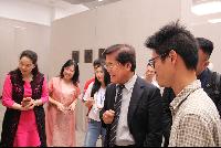 5月24日上午9:30,台湾屏东大学校长古源光、国际事务处事务长刘育忠等一行到访我院参观雕塑作品展。艺术学院院长李毅松,雕塑系徐济发老师于美术楼二楼展厅热情的迎接了客人。 该展览是2014届雕塑系毕业创作展。展览汇集了14届雕塑系学生在校时期创作的优秀作品30余件,涵盖了石膏、树脂、木材、石头、金属等多种雕塑材料。 观展伊始,屏东大学校长古源光一行人同我院院长李毅松等人合影留念。随后徐济发老师为屏东大学校长古源光一行人介绍了每件作品的创作思路,以及所蕴含的深刻含义。观看展览中,双方分别介绍了本专业的办学特色和优势,并希望未来能达成交流合作的共识。听着徐济发老师述说着每件作品的故事,了解到这些作品与民族传统文化相融合,充分反映着现实生活,古源光校长深刻的了解到具有民族文化题材的作品给人能带来的新奇的艺术感受。每件雕塑作品也刻画栩栩如生,不由得赢得了古源光校长的连连称赞。 观展结束时,屏东大学校长古源光为毕业生们题下了“美的感受”这四个字,希望他们在今后的艺术道路上不断开创自己。 与屏东大学校长古源光的交流将使我院与台湾高校的合作交流迈上一个新台阶,为我院与境外高校交流与合作提供了一个广阔的平台,同时为学生自身的发展开辟了更多的渠道,吸引更多同学前往学习! (文/王青星 图/姜浩南)