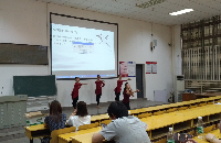 比赛开始,主持人宣读比赛规则与评分细则,随后参赛选手依次讲课,1号选手李俊老师以《千古绝唱》歌曲演唱技巧教学拉开了比赛的帷幕。2号选手郭小兰老师以“同学们知道被誉为中国最早的交响乐的音乐是什么音乐吗?”开始了自己的讲课内容《日本雅乐》。杨薇老师以马王堆汉墓出土的T型帛画引出了秦汉时期的绘画构图这节课的讲课内容。重点讲授了秦汉时期绘画构图的恢弘与浪漫的艺术化构图处理。朱江宏老师以一段舞蹈开始了自己讲授的课程《古典舞身韵》,先讲解,后示范,把中国古典舞的优美和特色展示给老师和学生,让受众者对《古典舞身韵》这门课有无限的向往,也把此次比赛推上高潮。