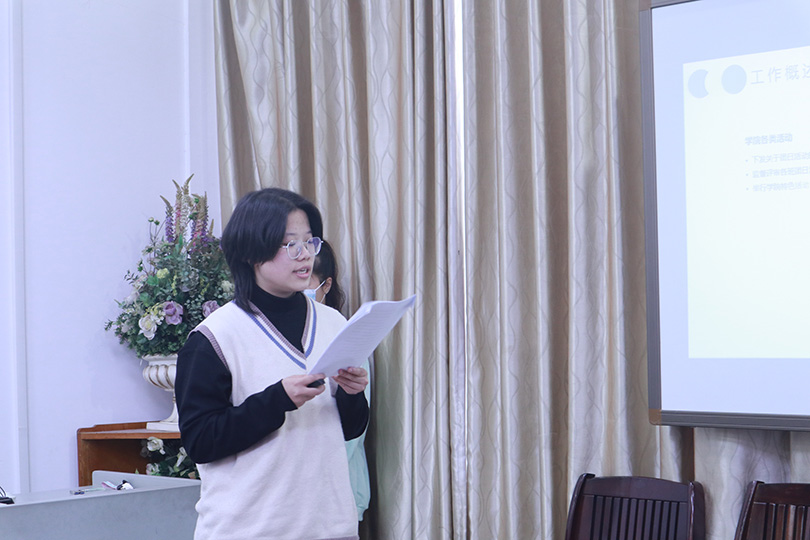 会前,各部门轮流播放精心准备的视频,展示各具特色的部门文化,回望取得的优异成绩,获得与会人员的阵阵掌声。各部门部长依次上台述职,以制作精良的演示文稿为基础,结合部门特点,集中展示部门成员风采和特色文化建设,在全面总结以往工作得失的同时,不忘对未来进行展望与规划,力争更上一层楼,为构建更优秀的学生会继续努力。台下同学认真聆听,掌声不绝。每位部长述职后,主席团成员针对各部门工作的不足之处、未来发展与创新方向等提出问题,各部门部长条理清晰,应答自如,赢得全场一致好评。在全体成员的热烈掌声中,本次大会落下帷幕。