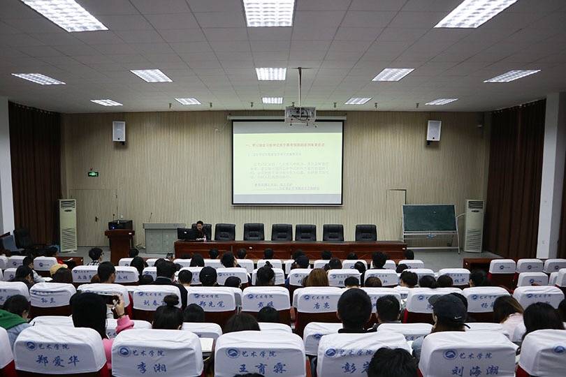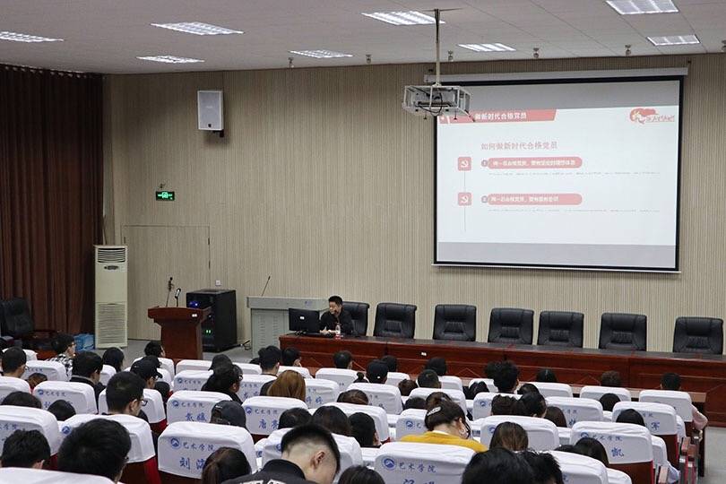 为深入贯彻落实习近平总书记在“不忘初心、牢记使命”主题教育工作会议上的重要讲话精神,10月15日下午三点,AWC万象城娱乐艺术学院在美术楼104报告厅召开党员大会,开展了“以立德树人铸就教育之魂”为主题的党课培训讲座,集中党员学习习近平总书记重要讲话精神。我院全体教职工及学生党员到场参加,本次大会由党委副书记胡鹏主讲。