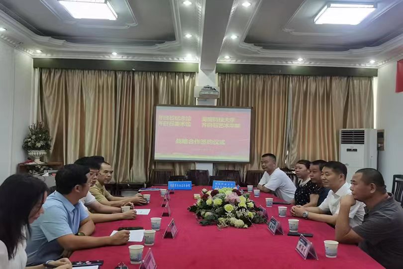 随后伍剑馆长发言:齐白石纪念馆(齐白石美术馆)是以齐白石命名的全国唯一一家具有独立法人资格的国家一级事业单位,在齐白石文化的弘扬和发展方面,他们责无旁贷。多年来,齐白石纪念馆(齐白石美术馆)的同志们,把齐白石领域的创作、研究、文物管理和数字平台、数字文创以及齐白石一系列内涵面向全国搭建起艺术平台。齐白石纪念馆(齐白石美术馆)馆藏大量极其珍贵的齐白石绘画、木雕、印章、诗文手札等原作,拥有国家专业出版社出版发行的学术辑刊《齐白石研究》,希望通过双方战略合作,把齐白石文化的内涵做得更深、外延做得更大。今天双方签下协议,一是代表齐白石纪念馆(齐白石美术馆)对于齐白石文化、“齐白石”金字招牌的弘扬和发展的责任与担当;二是通过“校”“馆”联合,双方互动、互赢,能更好地擦亮齐白石品牌,更好地弘扬齐白石文化,双方更深层次地合作;三是有效资源互动,将科大的教学、学科等一系列资源与齐白石纪念馆(齐白石美术馆)资源乃至全国美术场馆资源深度整合。展望未来,通过战略合作,双方合作的领域更宽、深度更深,今天是双方合作新的里程碑和新的起点,共商合作、共商未来、共促发展。