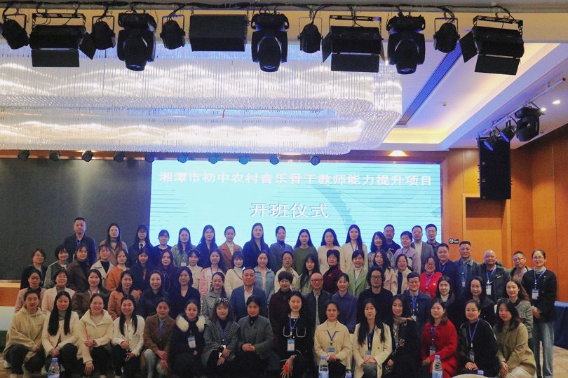 4月23日上午我校与湘潭市教育局,教师发展中心联合举行湘潭市初中农村音乐骨干教师能力提升项目开班仪式。湘潭市教育科学研究院院长成芳、湘潭市教育局教师科科长谭京湘,我院副院长王育霖教授,音乐系主任杨姝老师出席此次活动。
