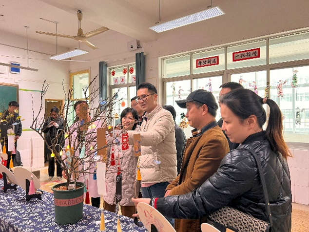 随后各位领导老师前往南座202教室参观近期实习生们开展的精品非遗美术作品展览。领导们充分肯定了本次非遗美术进校园活动的圆满开展,指出这一活动不仅弘扬和保护了湘潭地区的优秀本土文化,而且对学生的民族意识、文化意识和审美意识的提高都有着积极作用。