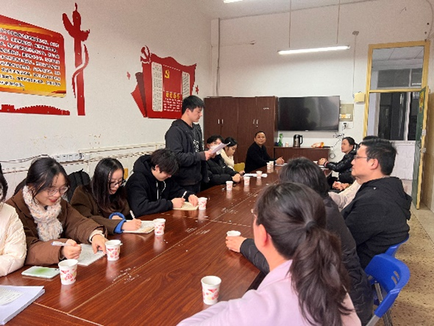 参观完后,各位领导和老师及学生来到了会议室,由实习带队教师龚畅主持召开了座谈会。会议伊始,龚畅老师对会议的流程作了简单的介绍,并对学院和实习学校为他们提供这么好的教育实践平台表示感谢,紧接着实习队长刘骋坤发言,介绍了实习队通过前期的调研、考察和实践,根据高中学生的特点,开发的油纸伞、扎染、剪纸、湘潭纸影、湘西苗画五个非遗课程。实习生代表吴湘雨及蒋树路也从自身的实习经历分享各自在实习学校的成长与蜕变,不仅教育实践能力得到了很大的提升,更坚定自己当一名优秀美术教师的信念。