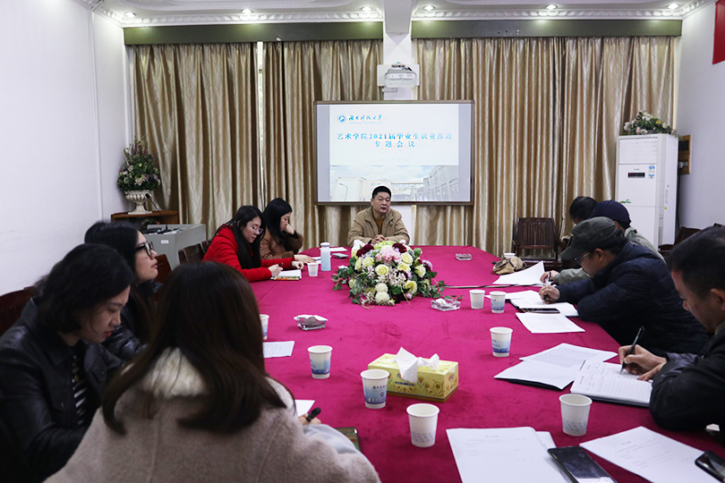 3月19日上午,艺术学院于美术楼203会议室举办了2021届毕业生就业推进专题会议。我院党委副书记胡鹏、各系主任、辅导员张晶晶、郑婷婷以及各毕业班班主任出席了本次会议。
