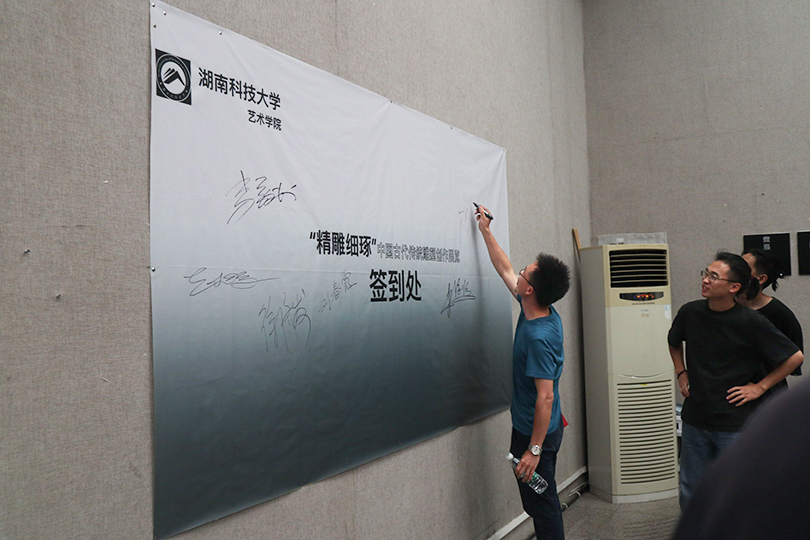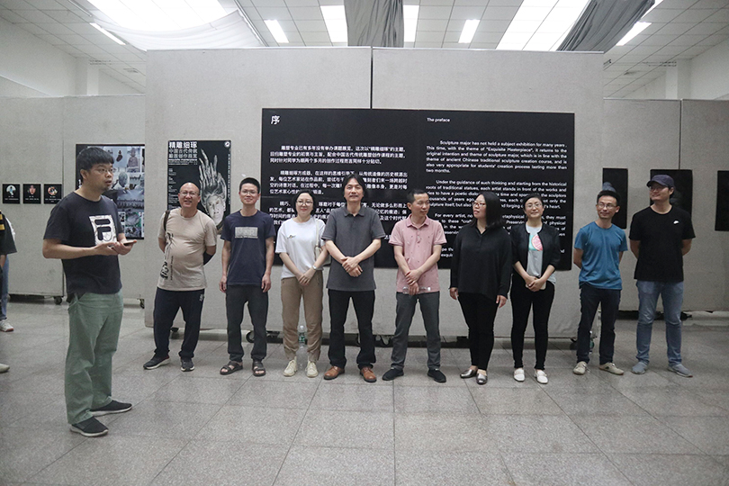 李毅松在开幕致辞中肯定了对雕塑专业同学们的创作能力和创作技巧,以及作品中展现的艺术激情与人文关怀。主持人赵湘学副院长着重强调了课程作业展览在专业人才培养过程中的重要作用,讲解了中国古代不同时期佛像艺术的造型特点,以及古代雕塑和现代雕塑形式语言上的差异,提醒同学们通过课程学习与作业展示要认真思考临摹与创作、传统与创新的关系。