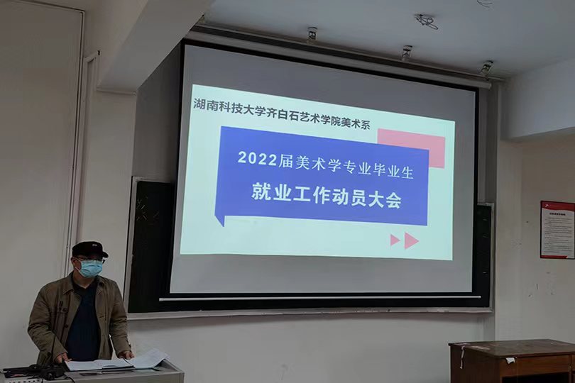 为全力推进2022届美术学专业毕业生就业工作,提高疫情下学生就业积极性和主动性,4月14日下午,我院在美术楼119教室举行了2022届美术学专业毕业生就业工作动员大会。学院主持工作的副院长赵湘学,党委副书记屠波,系主任雷永明,系相关教师及全体2022届美术学专业毕业生参与本次动员大会。