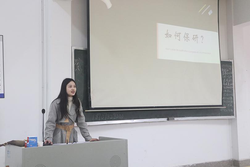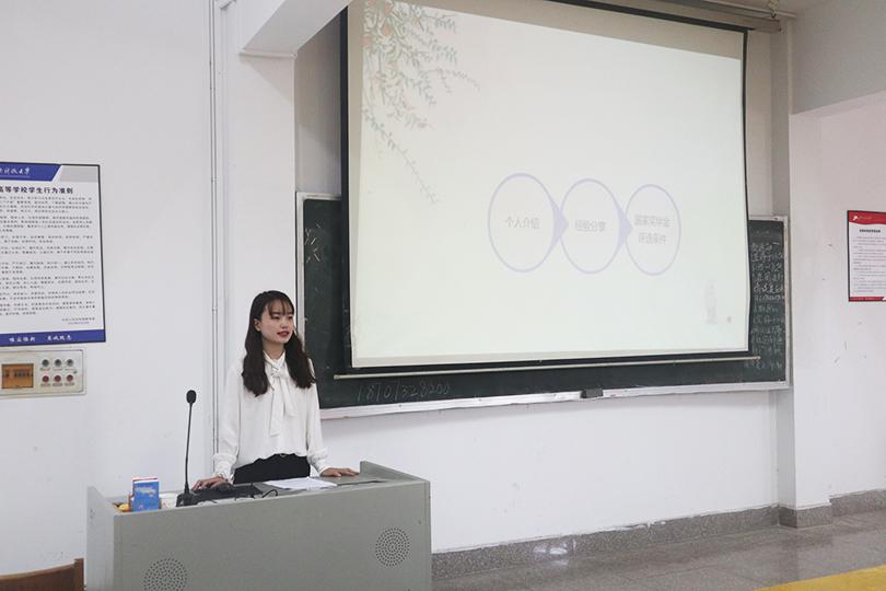 11月17日下午,我院在美术楼119教室召开优秀学生学习交流分享会。会议邀请优秀学生代表李琳同学、何可奕同学。会上,李琳同学为与会同学介绍了个人保研经验,提醒有志保研考研的同学要早做规划,积极践行,何可奕同学则分享自己荣获国家奖学金的心得体会。