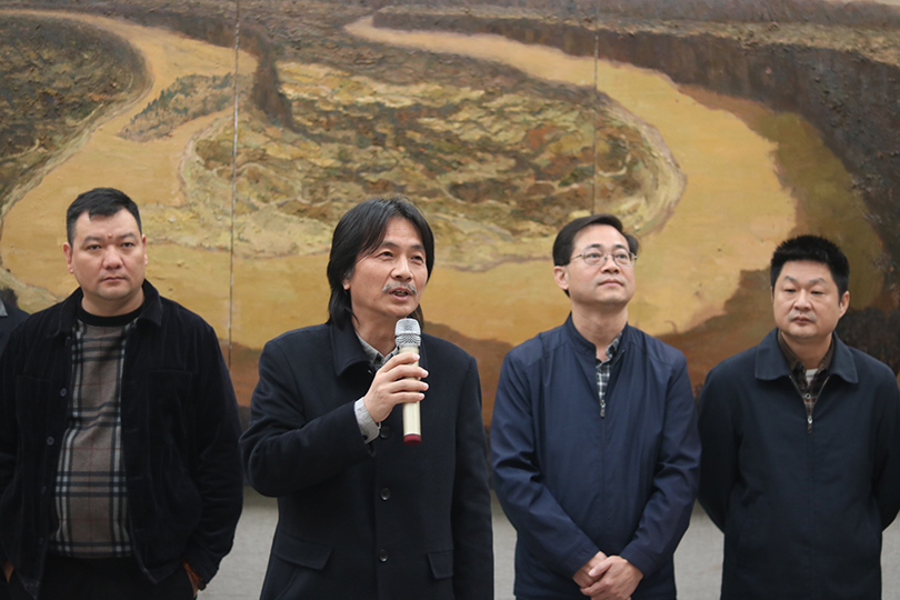 10月12日上午,艺术学院研究生全花油画作品展——“黄土地的歌谣”于美术楼二楼展厅隆重举行。韶山油画学会会长刘永红,湘潭市岳塘区油画学会张仲轶,湘潭市油画学会副主席付小明,湘潭市油画学会理事黄和平,湖南工程学院设计专业系主任张丽波,长沙东昇艺坊校长刘振宇,AWC万象城娱乐艺术学院院长李毅松,党委书记曾志东,副院长文牧江,副院长赵湘学,党委副书记胡鹏以及学院部分老师到场参加了开幕式并点评了展览作品。开幕式由艺术学院副院长文牧江主持。