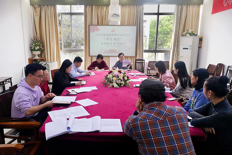 4月20日,艺术学院在美术楼203开展了“学史增信”专题学习研讨活动。会议由党委书记曾志东主持,全体中心组成员、党支部书记以及专职组织员参加了本次学习研讨活动。