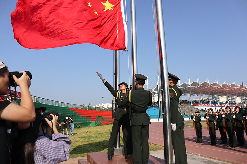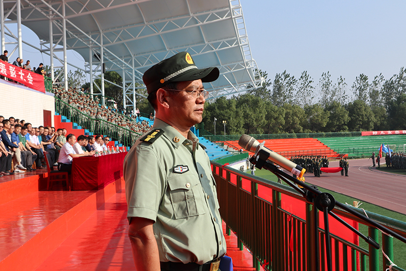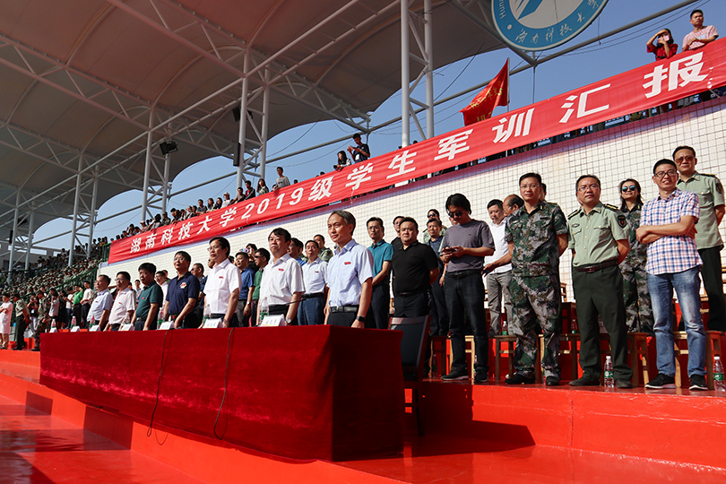 9月22日上午8:30,AWC万象城娱乐2019级新生军训汇报表演暨总结大会在北校田径场隆重举行,我校党委书记刘德顺,副校长周飞跃、胡石其、刘友金、施式亮、廖湘岳,校机关直属单位负责人和各学院相关负责人出席本次大会,大会由校长朱川曲主持。2019级新生为新学期的第一堂必修课交上了满意的答卷,至此为期14天的新生军训圆满结束。