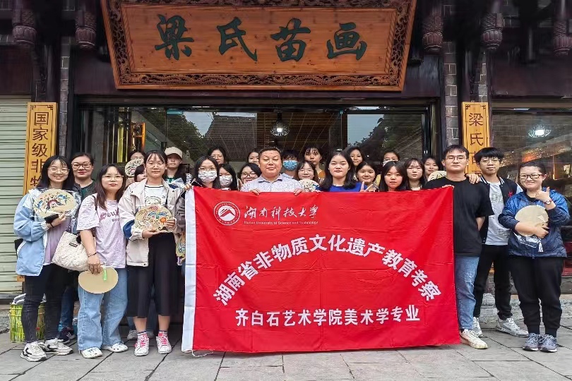 苗画是苗族民间艺术家在单色传统绣花样稿的基础上,逐步发展起来的一种独立画种。湘西苗画色彩艳丽,浓墨重彩,创作中注重夸张与变形,包含深厚的历史与艺术价值,2011年列入国家级非物质文化遗产名录。9月23日,19级美术学专业同学在王亚楠、朱竞生、龚畅三位老师的带领下来到湘西乾州古城梁氏苗画传习所学习苗画,与国家级传承人梁德颂和梁金翠父女一起揭开湘西苗画的神秘面纱。