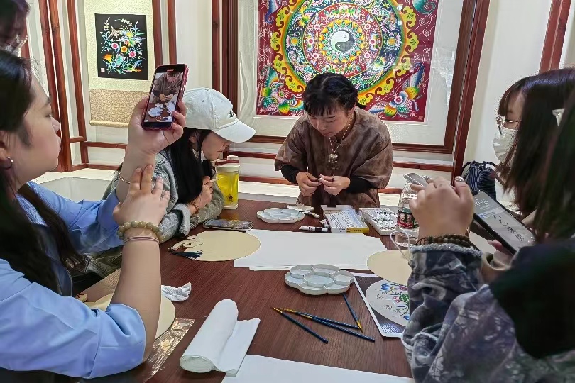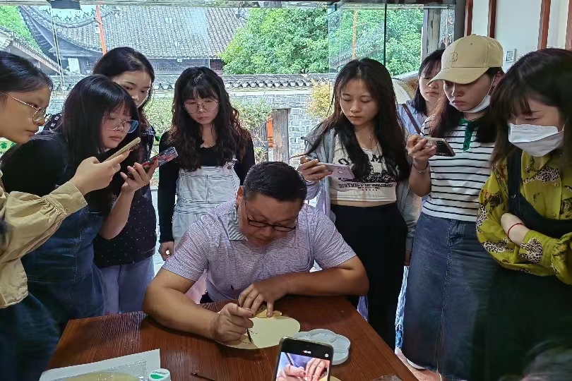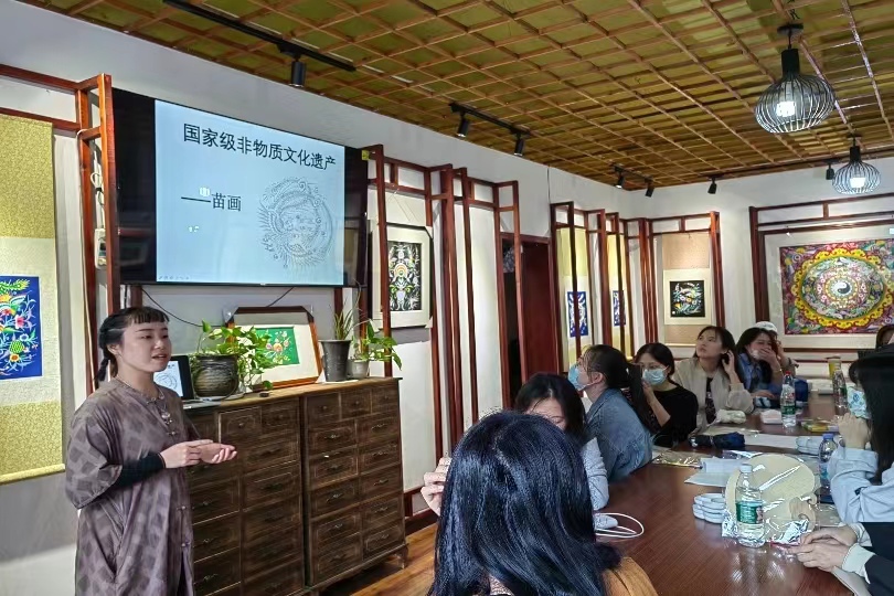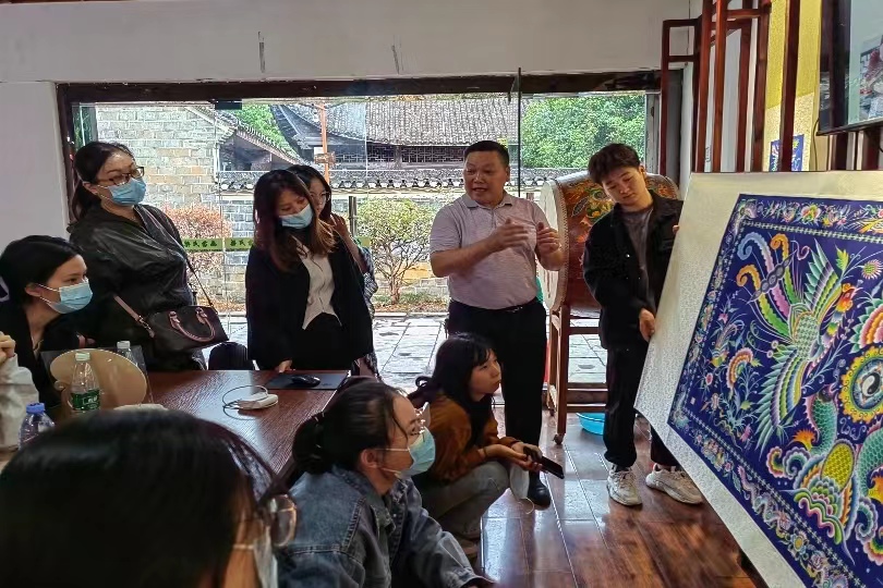 梁德颂老师特别重视新时代苗画的传承与发扬,开发了苗鼓、扇面、手机壳、手提包等许多的文创衍生品,不断发展与创新苗画。他表示,看见这么多大学生愿意来到他的传习所了解苗画,学习苗画,苗画将来一定能发展得越来越好!