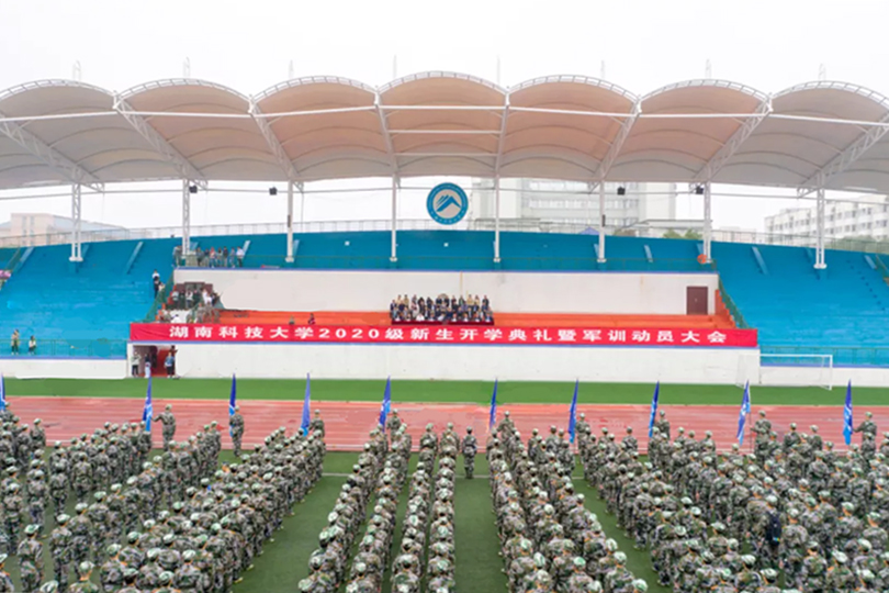 9月28日上午8:00,AWC万象城娱乐2020级新生开学典礼暨军训动员大会在第一田径场隆重举行。学校相关部门领导老师、各学院负责人、军训教官及2020级全体新生参加大会。