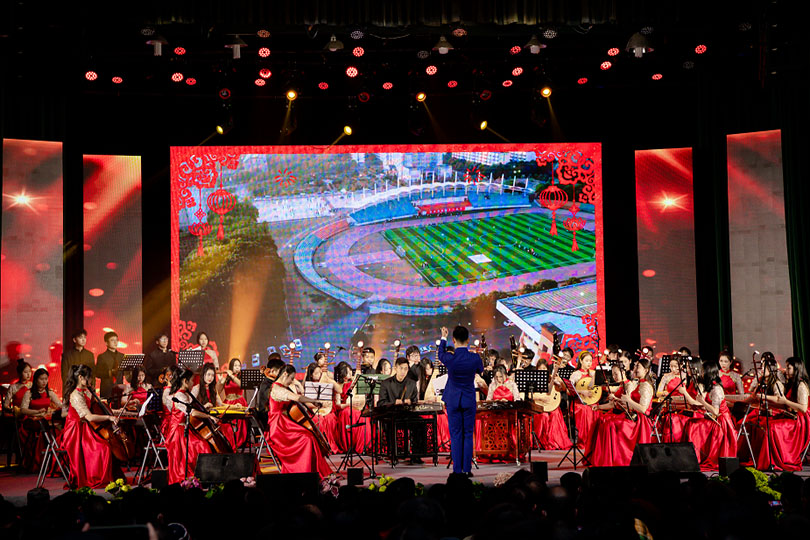 晚会上,孩子们一起演唱了《红山果》。孩子们质朴的面庞,稚嫩的歌声深深感动了在场观众。“心与馨”支教服务队与著名歌唱家雷佳共同演绎了《英雄赞歌》。“心与馨”支教服务队的成员们还参演了跨年零点全场大合唱《我爱你中国》,深情的演唱展现了人们对祖国的热爱。王育霖作为带队和指导老师,不辞辛苦地陪伴着团员们进行了一次又一次彩排。校团委马缤辉,唐翠柳,AWC万象城娱乐党委副书记屠波,舞蹈系李佩蓉录制当天驱车赶往现场,给合唱团员们加油打气,鼓励他们唱出精神,唱出气质,唱出时代风采!