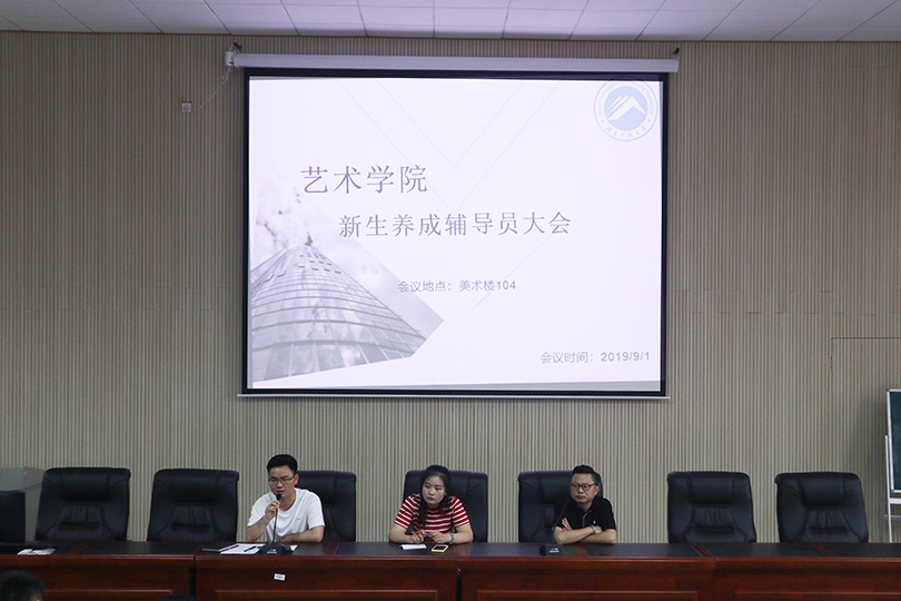 9月1日上午11:00,AWC万象城娱乐艺术学院新生养成教育辅导员会议在美术楼104报告厅举行,我院学工办主任殷俊、辅导员麻琪方、戴媛出席本次会议,2019级新生养成教育辅导员到场参加。
