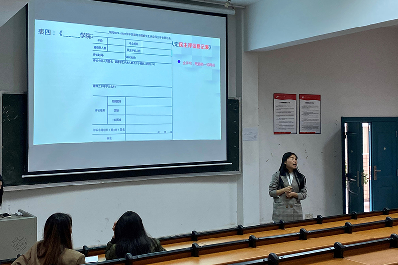 会议伊始,勤工助学部部长邱蘭茜详细介绍了家庭经济困难学生认定评选规则。她说明了评定所需上交的一系列材料,对填写的格式与规范作出明确要求,并强调了评定的截止时限。向彩娥带领学生梳理了认定流程,再次强调评定工作开展与协调的细节,同时进一步讲解学校下发的相关文件。龙睿着重指导了21级新生,嘱咐各班负责人切实开展相关主题班会,公平合规地落实班级投票认定工作。
