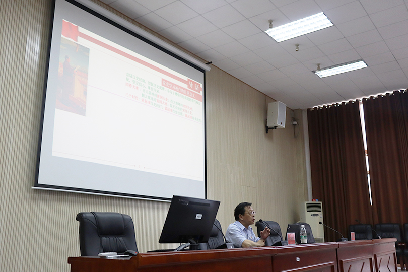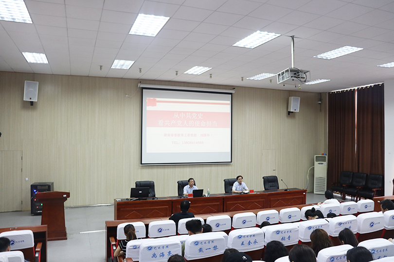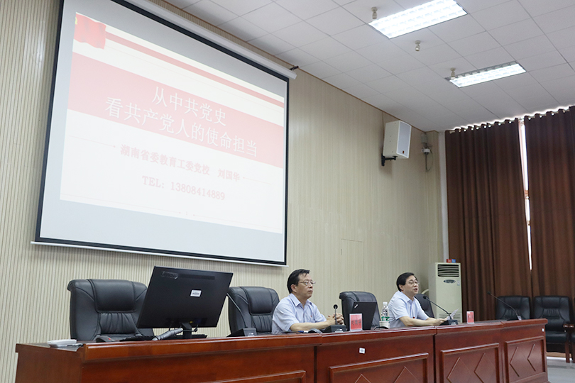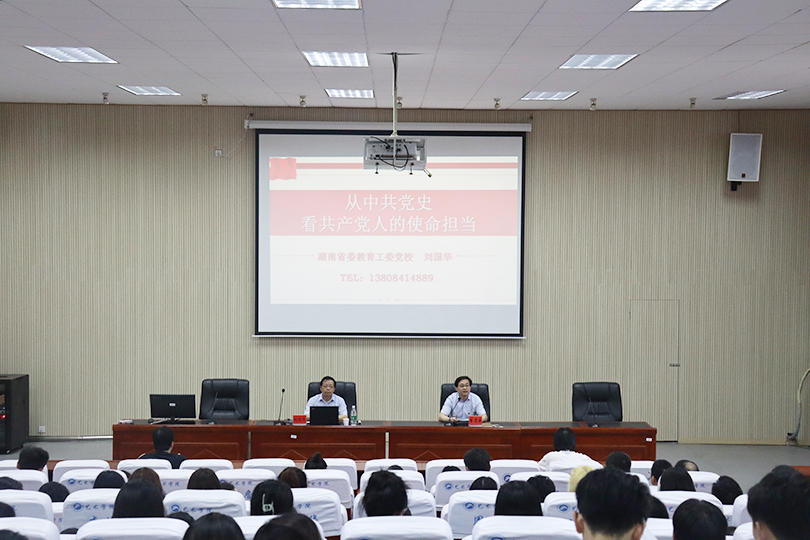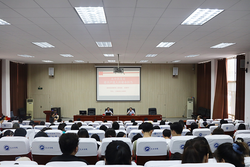 6月11日下午,艺术学院邀请到湖南省委教育工委党校党务副校长刘国华教授在美术楼104讲《从中共党史看共产党人的使命担当》党课,学院党委书记曾志东主持,学院全体师生党员参加。